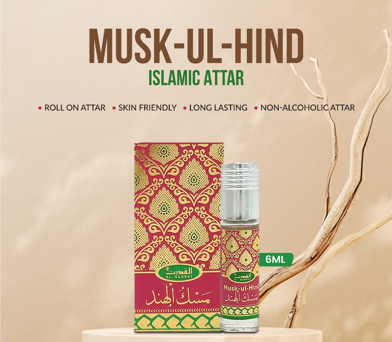 Musk-ul-Hindh ATTAR  by  Al-QUDRAT, NON – ALCOHOLIC ATTAR, SKIN FRIENDLY, LONG LASTING. 6ml.