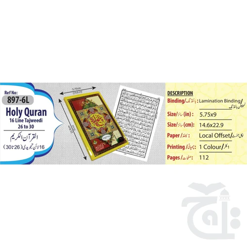 Panj Para ( 26-30 para ) 16 Line Tajweedi Single Color 897-6L